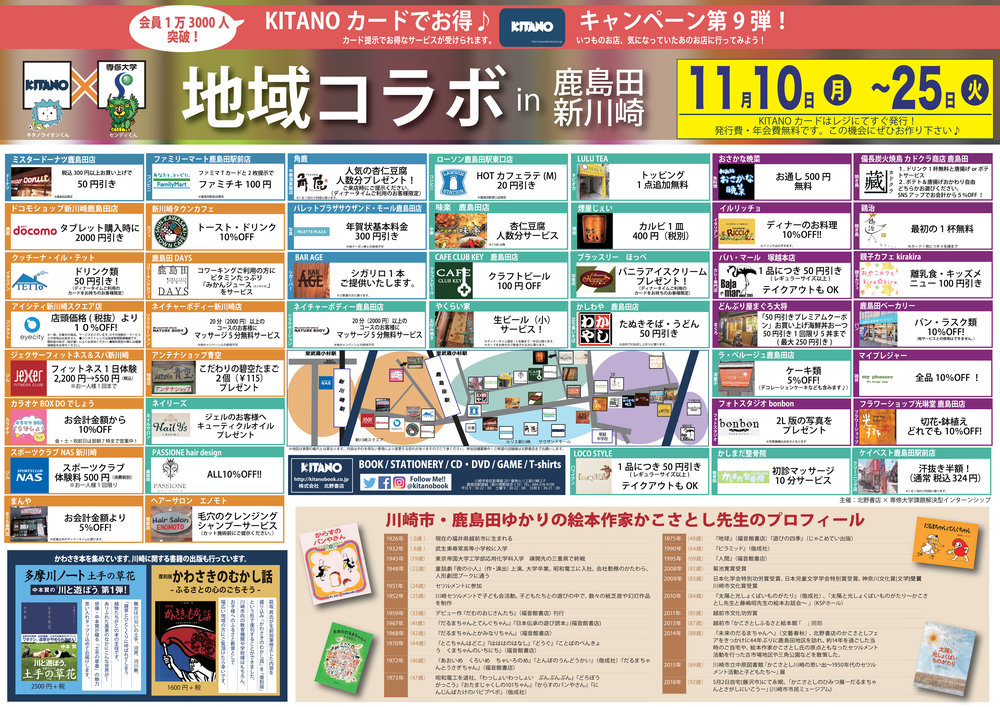 1947年創業。神奈川県川崎市幸区 南武線 鹿島田駅前の地域密着型書店です。地域情報の発信等をしていきます。イベントのご相談・企画のご相談等お気軽にお問合せ下さい。